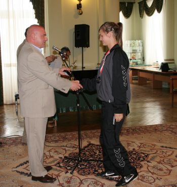 Prezydent gratulował zawodniczkom tak wysokiego osiągnięcia, przekazał nagrodę pieniężną, okolicznościowe medale i pamiątkowe grawertony dla opiekunów i sponsora klubu.