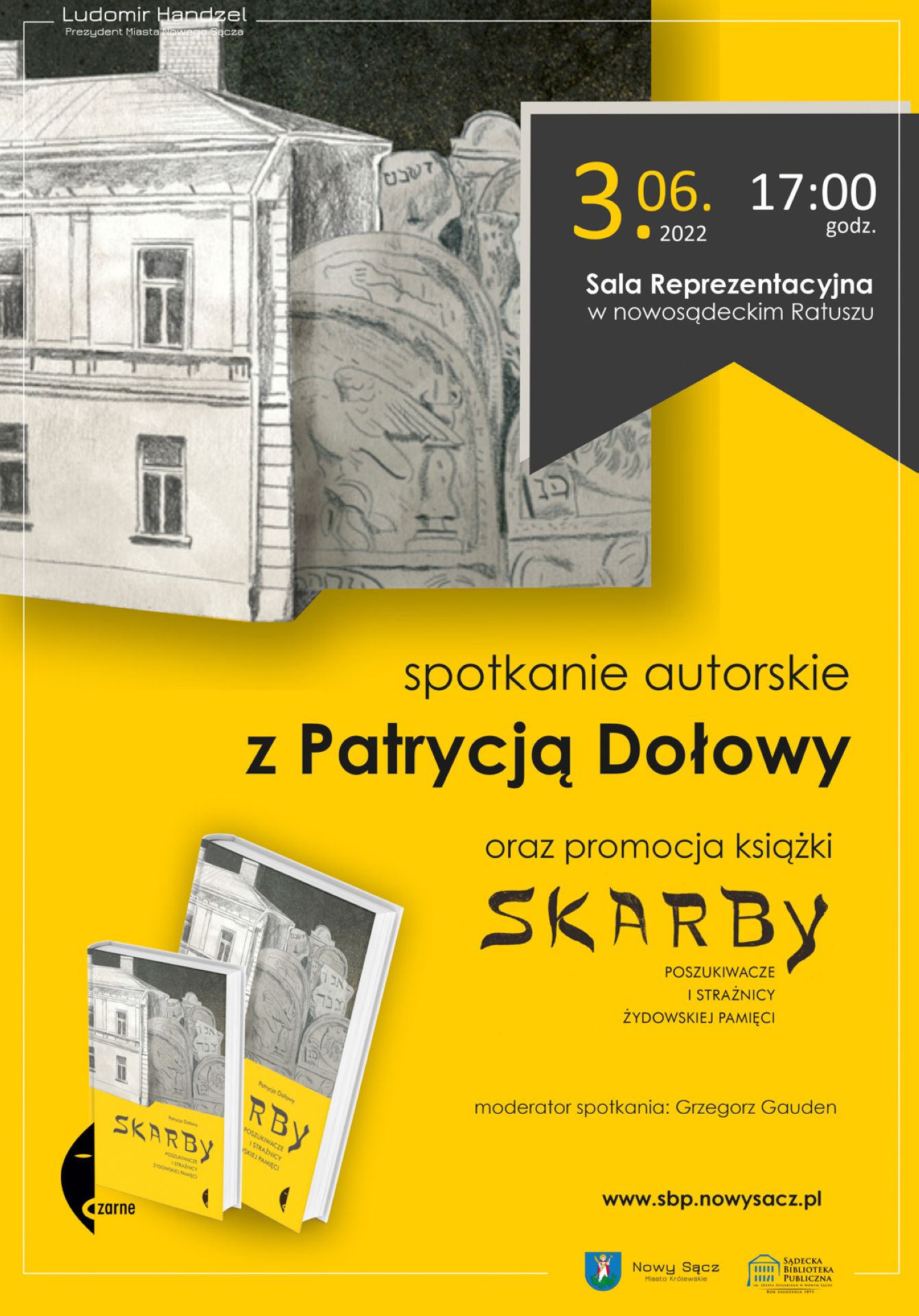 Sądecka Biblioteka Publiczna im. Józefa Szujskiego zaprasza na spotkanie z Patrycją Dołowy, podczas którego autorka będzie promować swoją najnowszą książkę pt. „Skarby. Poszukiwacze i strażnicy żydowskiej pamięci”. Spotkanie poprowadzi Grzegorz Gauden.