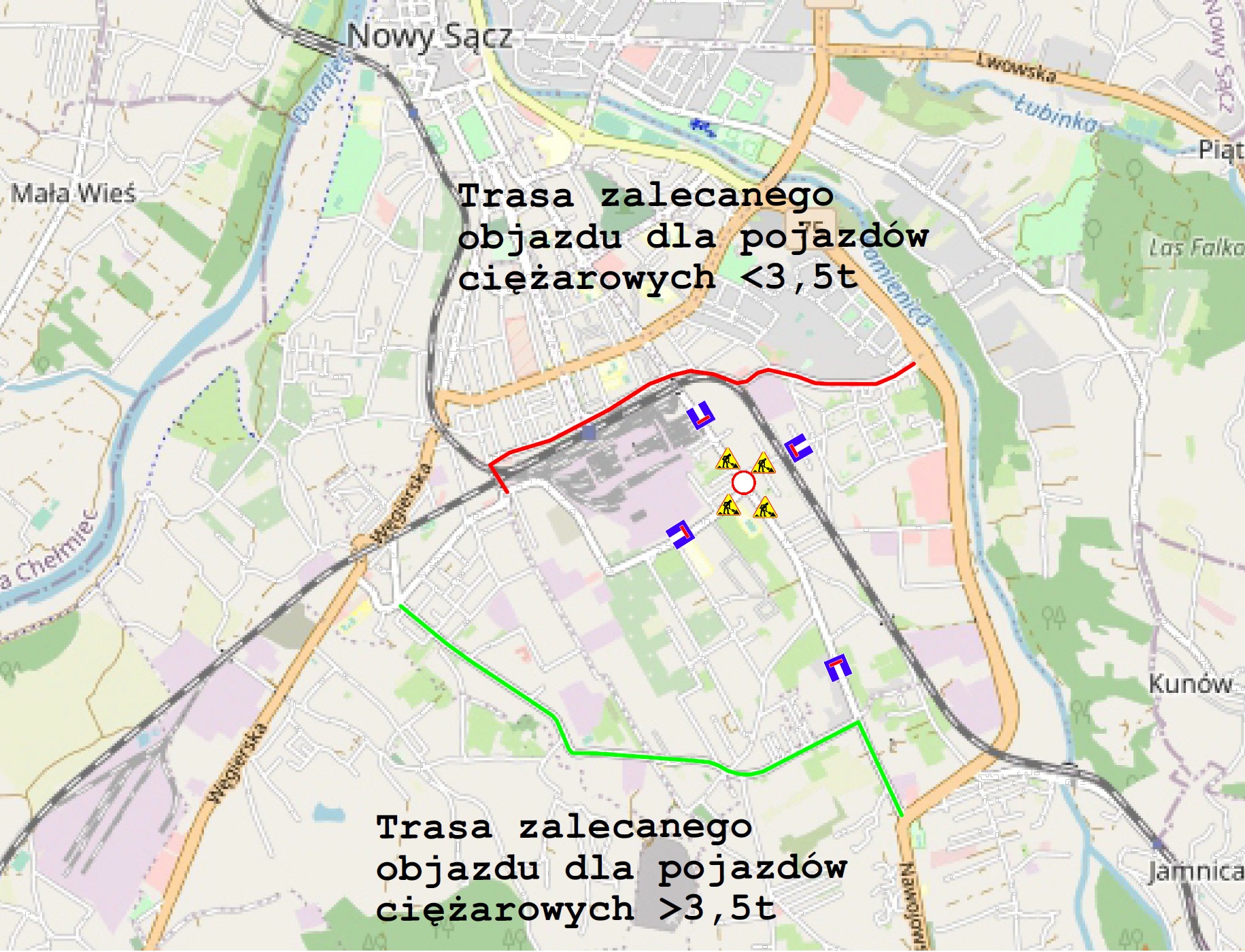 Miejski Zarząd Dróg w Nowym Sączu informuje, że od 23 maja do 29 maja planowane jest zamknięcie skrzyżowania ulic Traugutta-Nawojowska-29 Listopada z pozostawieniem prawoskrętu z ul. 29 Listopada w ul. Nawojowską i utworzeniem lewoskrętu z ul. Nawojowskiej w ul. 29 Listopada prawym pasem.