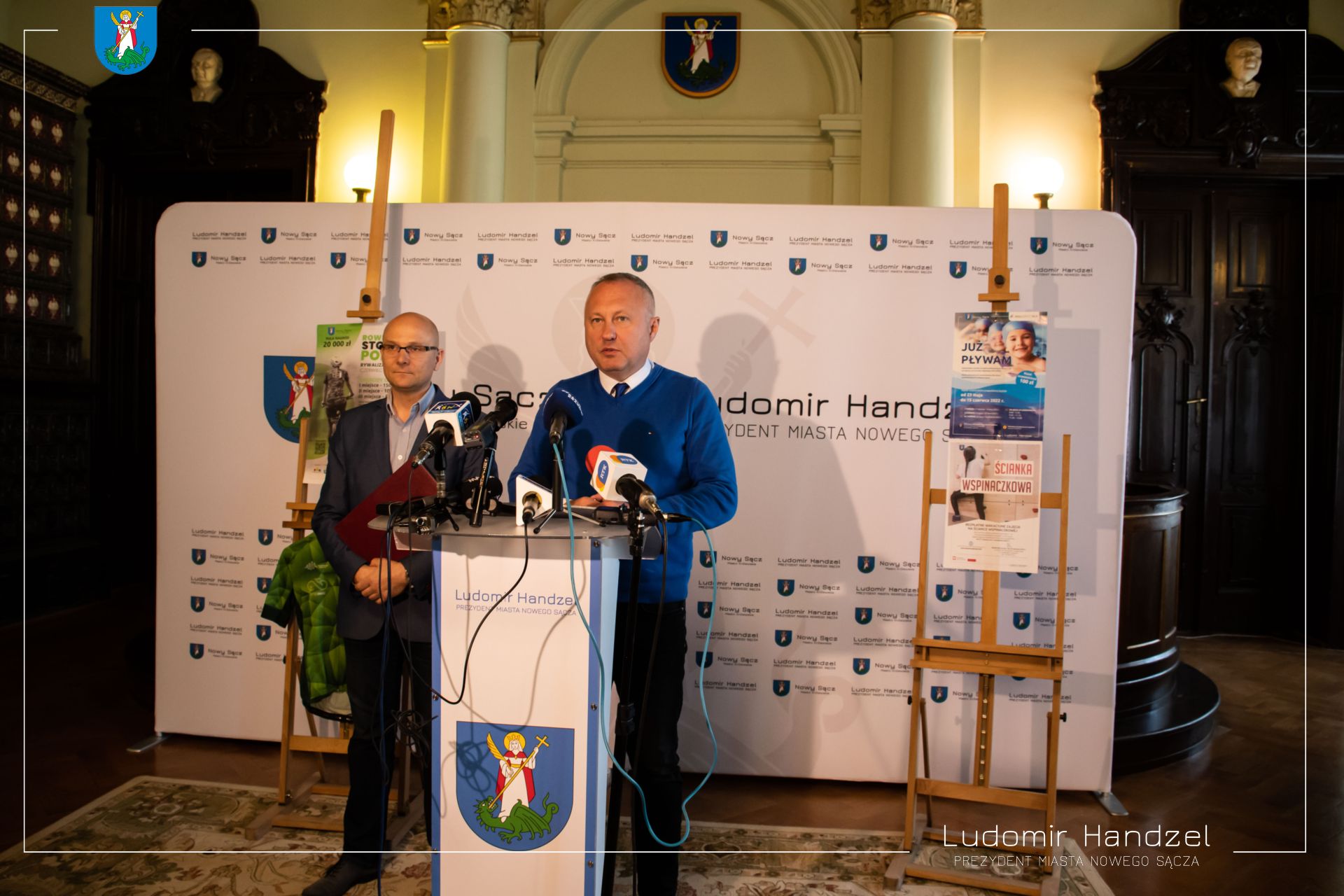 W sali reprezentacyjnej Ratusza odbyła się konferencja prasowa, podczas której prezydent Ludomir Handzel wraz z dyrektorem Wydziału Sportu i Turystyki Tomaszem Baliczkiem przedstawił informacje dotyczące najbliższych wydarzeń sportowych organizowanych w Nowym Sączu.