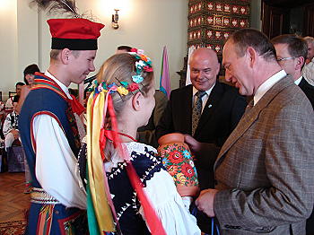 Prezydent miasta, wraz z dyrektorem MCK Sokół Antonim Malczakiem i wicemarszałkiem Leszkiem Zegzdą przyjęli od przedstawicieli wszystkich zespołów symboliczne podarunki i wręczyli pamiątki związane z miastem Nowym Sączem.