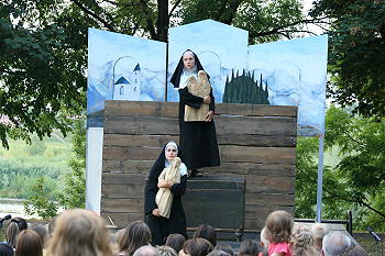 Ulice Nowego Sącza stały się na dwa dni otwartą sceną na wolnym powietrzu dla aktorów, którzy w ramach cyklu imprez pt: „Pierścień świętej Kingi” bawili mieszkańców miasta. W piątkowe popołudnie, w okolicach ruin zamku zespół „Teatru wędrownego” wystawił spektakl pt. „Żywot Świętej Kingi”. Widownia licząca około 100 osób doskonale bawiła się przy legendach i podaniach o sądeckiej świętej – ujętych w lekką, humorystyczną formę.