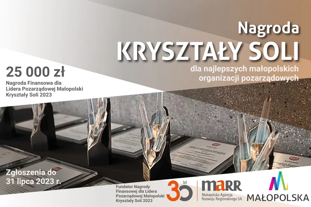 Trwa nabór do XIX edycji konkursu o Nagrodę KRYSZTAŁY SOLI 2023 dla najlepszych organizacji pozarządowych w Małopolsce.