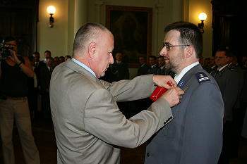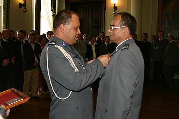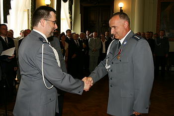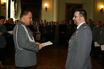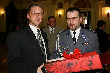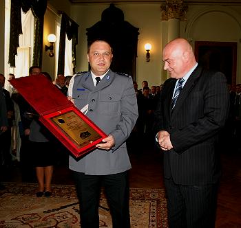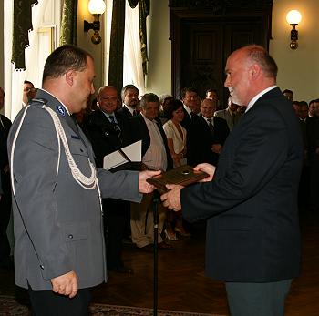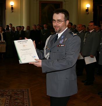 Komendant Miejski Policji w Nowym Sączu - Witold Bodziony oebrał z rąk Małopolskiego Komendanta Wojewódzkiego - Zbigniewa Stawarza Certyfikat Zarządzanie Jakością ISO 9001:2000 dla nowosądeckiej Miejskiej Komendy Policji.