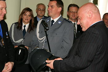Prezydent Ryszard Nowak otrzymał od Komendanta Miejskiego Policji – Witolda Bodzionego pamiątkowy grawerton: „za wspieranie projektu Zintegrowanej Polityki Bezpieczeństwa realizowanego przez Komendę Miejską Policji w Nowym Sączu”. Pamiątkową tablicę odebrał także zastępca przydenta - Jerzy Gwiżdż. Prezydent Ryszard Nowak otrzymał również na pamiątkę czapkę brytyjskiego policjana.