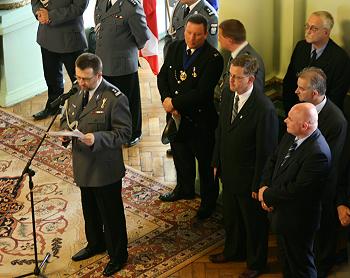 „W dniu dzisiejszym obchodzimy „Święto Policji” . Społeczeństwo polskie chce dostrzegać pracę funkcjonariuszy policji i chce również pamiętać o sukcesach w pracy policjantów. Dzieje się tak, ponieważ wszyscy pragniemy mieć poczucie bezpieczeństwa - każdego dnia, w każdej sytuacji. Żadne państwo na świecie nie może prawidłowo funkcjonować bez pracy dobrze zorganizowanej policji. O tym – jak ważna jest praca policjantów, nie trzeba nikogo przekonywać. Społeczeństwo oczekuje obecności funkcjonariuszy policji na ulicach miast, w miejscach, które uważane są za niebezpieczne.