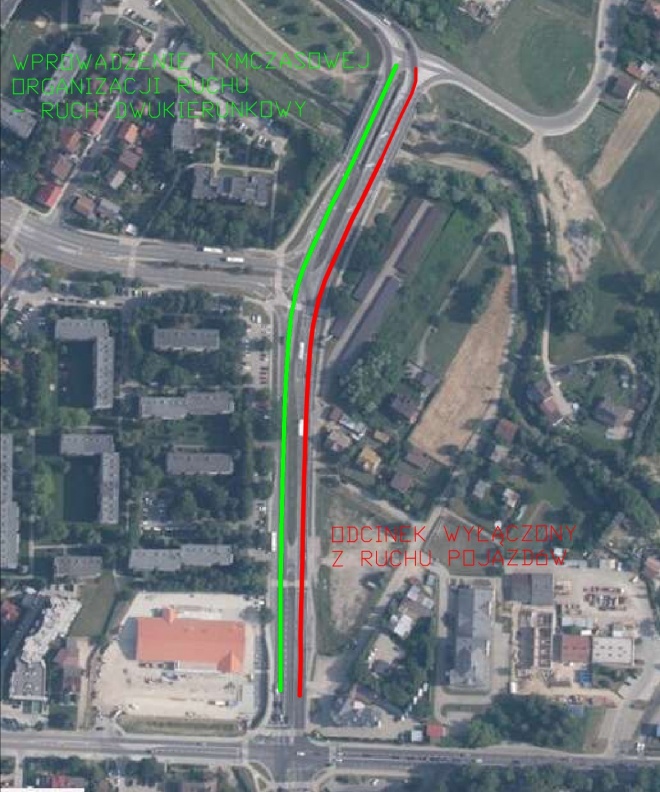 W I etapie robót zamknięta zostanie jezdnia prawa. Na czas prowadzonych prac zostanie utrzymany ruch dwukierunkowy, prowadzony jezdnią lewą. Wyłączona zostanie możliwość wjazdu z ulicy Sucharskiego w ulicę Nowochruślicką w kierunku Krakowa.