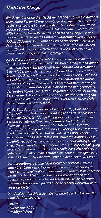 Zaproszenie na koncert, który odbędzie się w Burghoff Lörrach