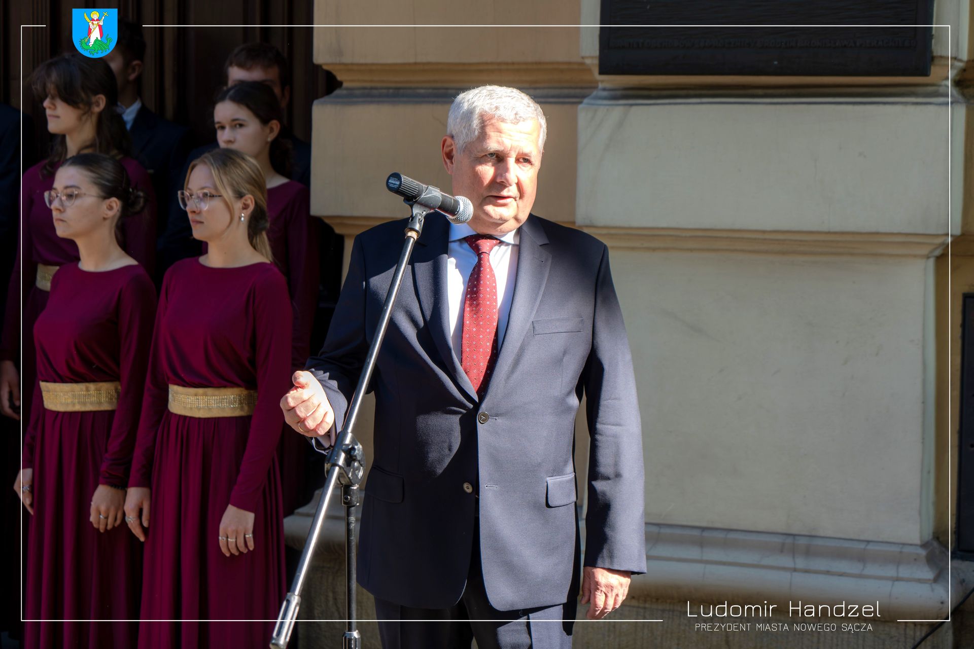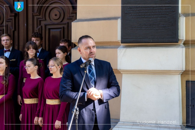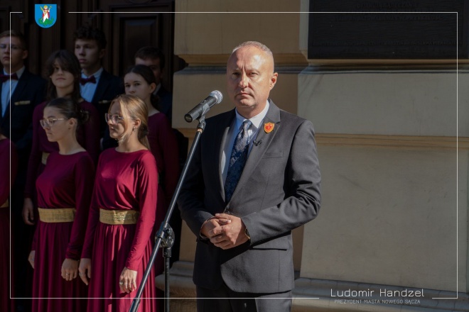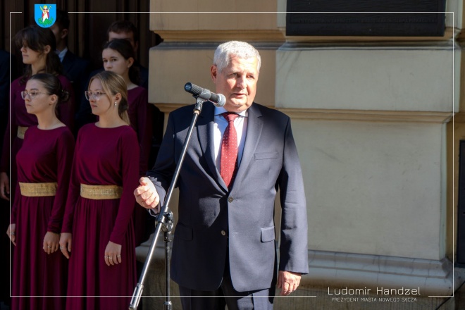 Prezydent Ludomir Handzel wspólnie z gen. bryg. Markiem Łapińskim szefem Służby Wywiadu Wojskowego oraz z dr. Karolem Nawrockim Prezesem IPN i Jackiem Tomasikiem dyrektorem I LO, odsłonił tablicę poświęconą wybitnemu sądeczaninowi i uczniowi tej szkoły Marianowi Chodackiemu.