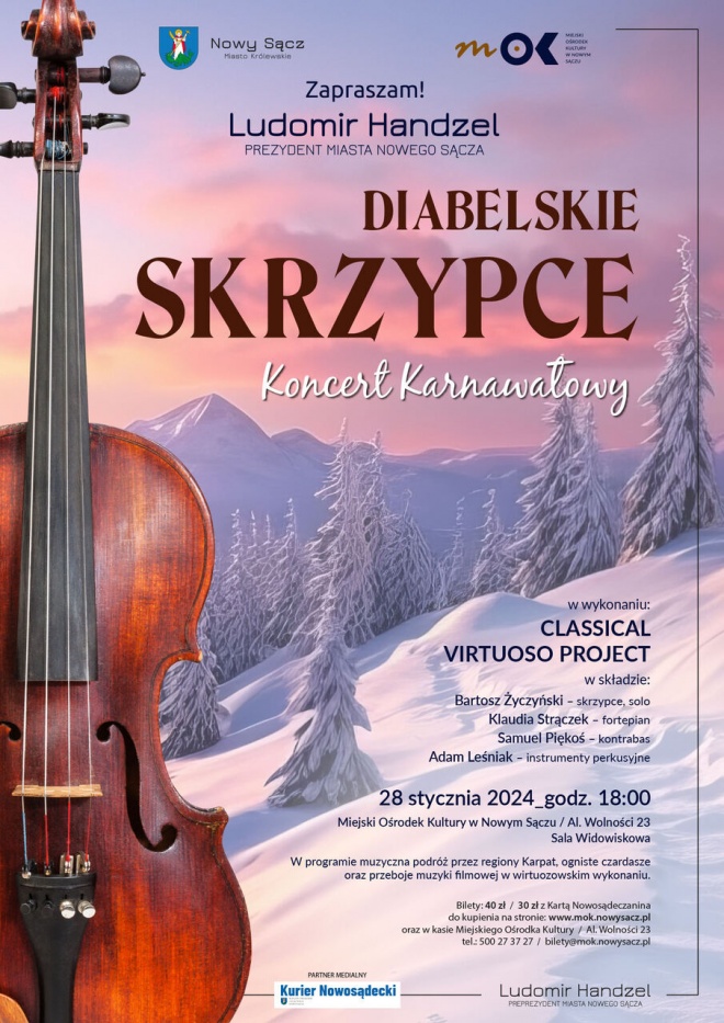 Odbędzie się on 28 stycznia (niedziela), o godz. 18, w sali widowiskowej MOK. W programie muzyczna podróż przez regiony Karpat, ogniste czardasze oraz przeboje muzyki filmowej w wirtuozerskim wykonaniu.