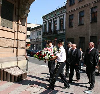 Oficjalna część uroczystości zakończyła się przy tablicy upamiętniającej postać Józefa Piłsudskiego, pod którą przedstawiciele władz miasta złożyli wiązanki kwiatów.