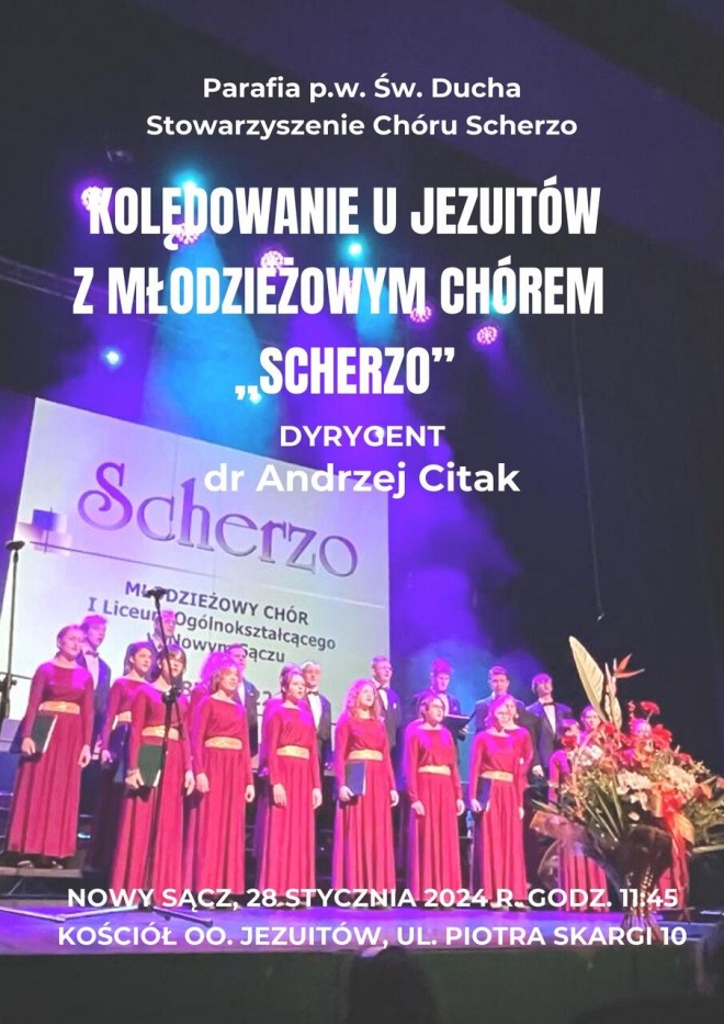 Parafia p.w. św. Ducha oraz Stowarzyszenie Chóru Scherzo zaprasza na kolędowanie u Jezuitów.