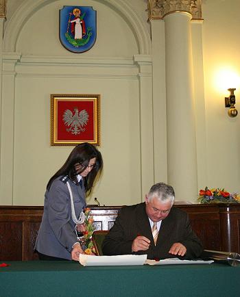 W sali reprezentacyjnej ratusza odczytano treść aktu erekcyjnego, a także przypomniano historię starań o budowę nowej siedziby dla sądeckiego policji. Pod aktem erekcyjnym podpisy złożyli: Wojewódzki Komendant Policji – Andrzej Rokita, Prezydent Miasta Nowego Sącza – Ryszard Nowak, Wicestarosta Sądecki – Mieczysław Kiełbasa, Komendant Miejski Policji w Nowy Sączu – Witold Bodziony, Prezes Zarządu PPHU „ERBET” – Tomasz Ćwikowski.