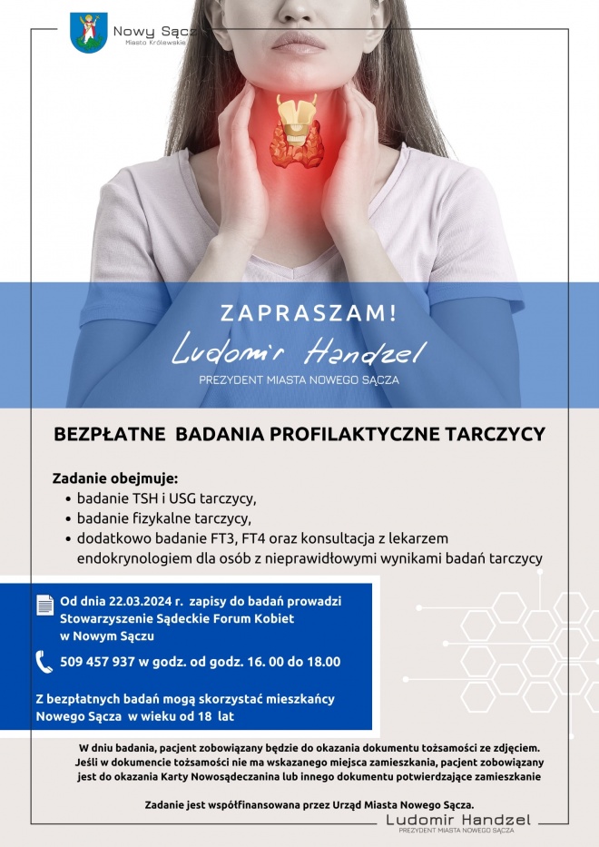 Prezydent Ludomir Handzel zaprasza na bezpłatne profilaktyczne badania tarczycy.
