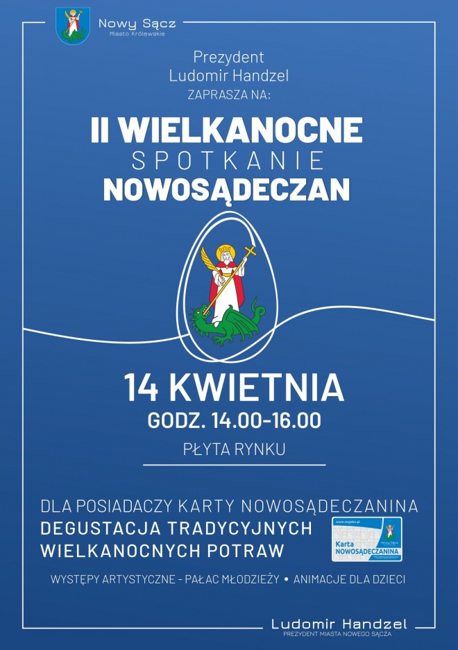 Prezydent Miasta Ludomir Handzel serdecznie zaprasza na II Wielkanocne Spotkanie Nowosądeczan, który odbędzie się 14 kwietnia, w godz. 14.00-16.00 na płycie nowosądeckiego rynku.