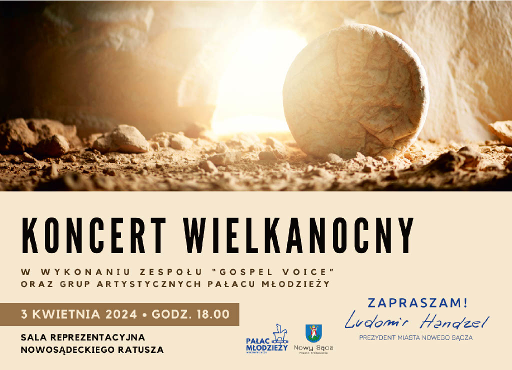 Prezydent Ludomir Handzel oraz Milenia Małecka-Rogal dyrektor Pałacu Młodzieży serdecznie zapraszają sądeczan na wielkanocny koncert zespołu Gospel Voice.