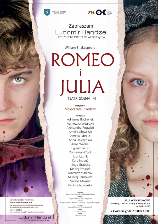 Miejski Ośrodek Kultury w Nowym Sączu zaprasza na premierę spektaklu "Romeo i Julia" w wykonaniu Teatru Scena M.