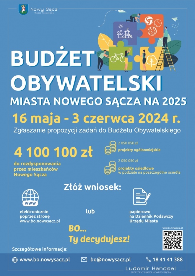 Od 16 maja mieszkańcy Nowego Sącza mogą składać projekty w ramach Budżetu Obywatelskiego 2025. Chodzi zarówno o projekty ogólnomiejskie, jak i osiedlowe.