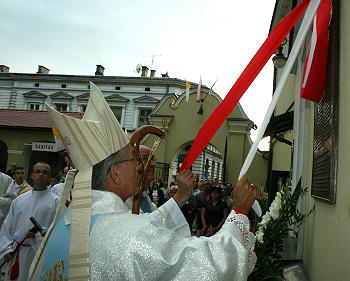 Prezydent miasta Ryszard Nowak, wraz z wiceprezeydentem Bożeną Jawor i sekretarzem miasta Markiem Oleniaczem uczestniczyli w uroczystościach odsłonięcia i poświecenia tablicy upamiętniającej Ojców Jezuitów, którzy ponieśli śmierć w wyniku działań wojennych i represji komunistycznych. Na tablicy znajdują się nazwiska 83 zakonników zamordowanych w latach 1939 – 1949. Obok nazwisk umieszczono wymowny fragment drutu kolczastego i różańca, wykonanego przez więzionego w obozie koncentracyjnym Ojca Jezuitę. Tablica została umieszczona na ścianie budynku klasztornego, między oknami dawnych sal katechetycznych, na terenie dziedzińca klasztornego, tuż przy głównym wejściu do kościoła. Po uroczystej mszy świętej, której przewodniczył ksiądz biskup ordynariusz Wiktor Skworc, prezydent złożył wiązankę kwiatów pod pamiątkową tablicą.