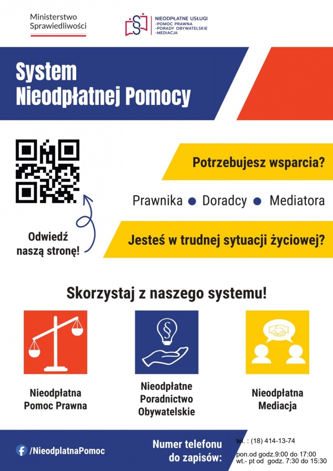 Osoby potrzebujące pomocy prawnej bądź poradnictwa obywatelskiego mogą uzyskać wsparcie bezpłatnie.