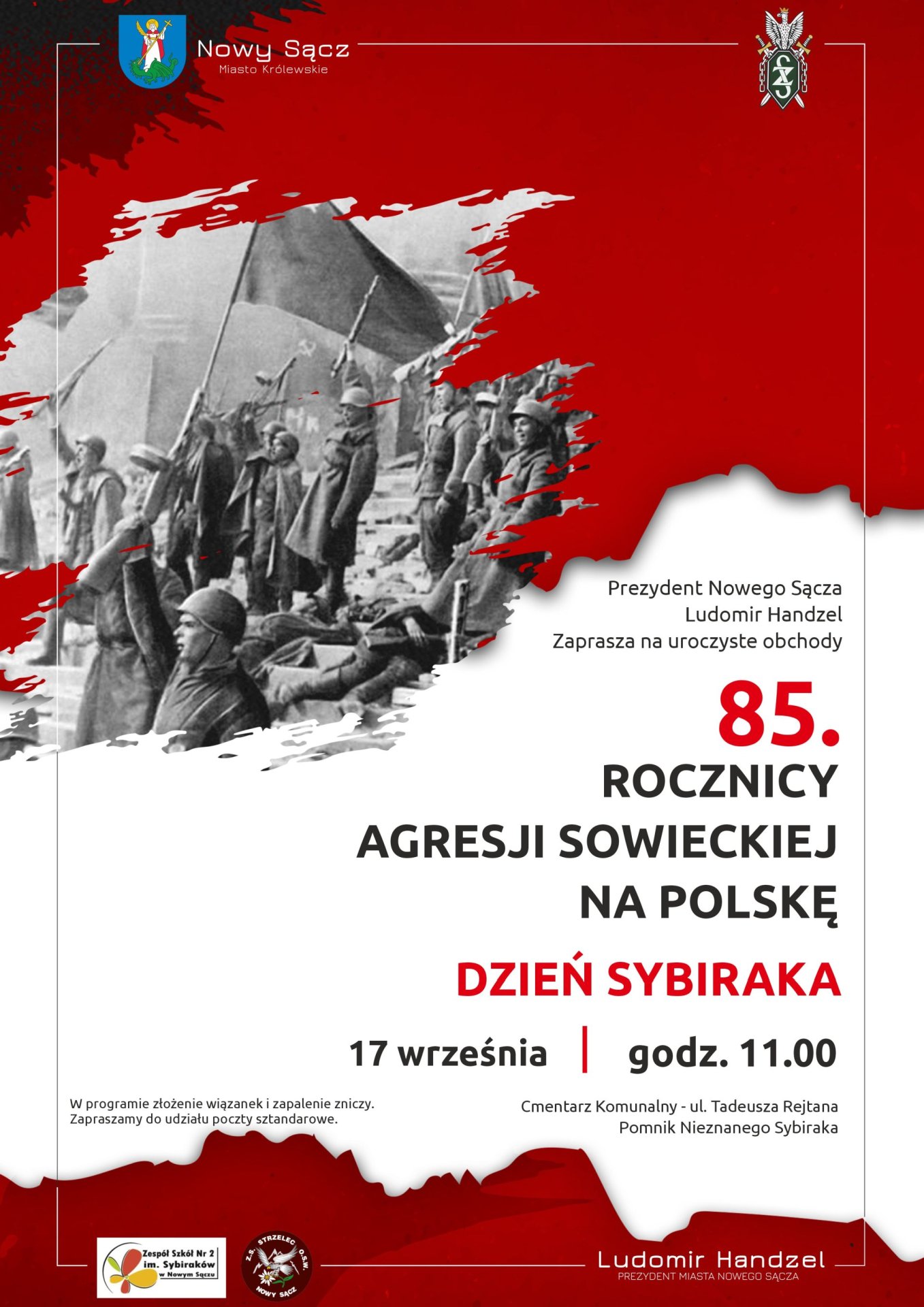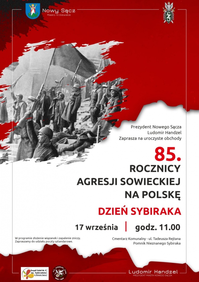 Prezydent Ludomir Handzel zaprasza mieszkańców Nowego Sącza na uroczyste obchody 85. rocznicy agresji sowieckiej na Polskę oraz Dzień Sybiraka.