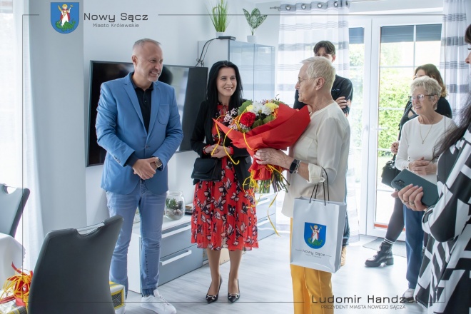 Prezydentowi towarzyszyła Monika Lichoń, kierownik nowosądeckiego USC. Ona również dołączyła się do życzeń dla jubilatki.