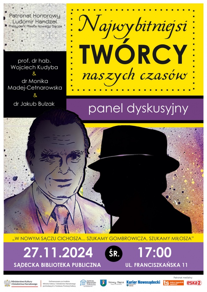 „W Nowym Sączu cichosza… Szukamy Gombrowicza, szukamy Miłosza” dofinansowanego ze środków Ministra Kultury i Dziedzictwa Narodowego pochodzących z Funduszu Promocji Kultury.