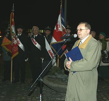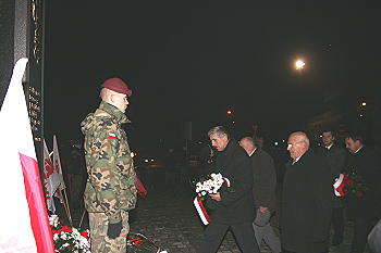 Po uroczystościach kościelnych sądeczanie przeszli w okolice pomnika Solidarności, gdzie złożono wiązanki biało-czerwonych kwiatów. Prezydent Ryszard Nowak powiedział m.in.