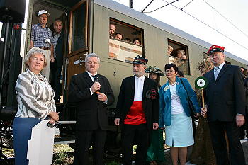 Wiceprezydent Bożena Jawor, tuż przed odjazdem pociągu retro powiedziała, że kultywowanie pięknych tradycji kolejarskich i historii zabytkowej linii kolejowej jest doskonałym sposobem na promowanie Ziemi Sądeckiej. Pani Wiceprezydent otrzymała od Ryszardy Leszczyńskiej – współtwórcy imprezy „Pociąg do przyjemności” i budowniczego skansenu kolejowego w Chabówce – panoramiczną fotografię ukazującą pociąg retro wśród malowniczych wzgórz Sądecczyzny.