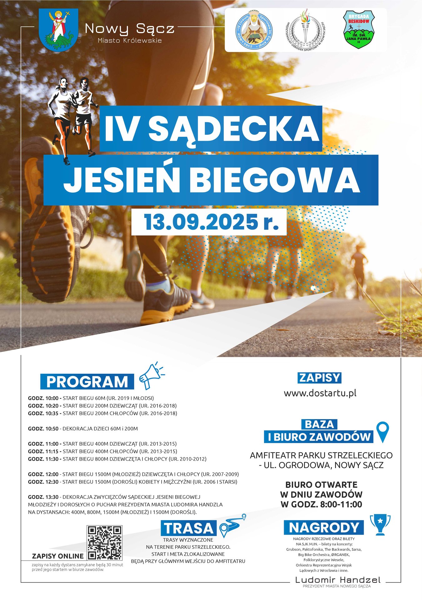 - godz. 13.30 - dekoracja zwycięzców Sądeckiej Jesieni Biegowej dla młodzieży i dorosłych