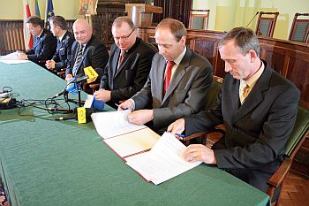 W obecności Prezydenta Nowego Sącza Ryszarda Nowaka, Starosty Nowosądeckiego Jana Golonki oraz Małopolskiego Komendanta Wojewódzkiego Andrzeja Łabuza, Komendant Miejski PSP Janusz Basiaga podpisał umowę z przedstawicielami Firmy ERBET – Tomaszem Ćwikowskim i Romanem Słowikiem dotyczącą budowy strażnicy Komendy Miejskiej PSP wraz z Jednostką Ratowniczo- Gaśniczą PSP 1.