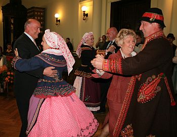 Podczas drugiej części spotkania dla zaproszonych gości zespół „Lachy” zatańczyły i zaśpiewał ludowe przyśpiewki. Na zakończenie prezydent obdarował członków zespołu słodkimi upominkami.