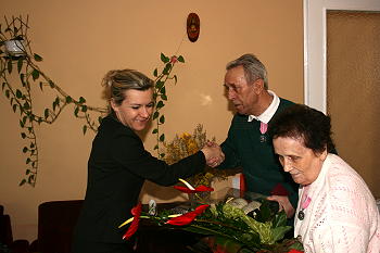 Wiceprezydent Bożena Jawor rozmawiała z małżonkami o mieście Nowym Sączu, podczas spotkanie państwo Kurczowie wspominali Nowy Sącz sprzed lat.