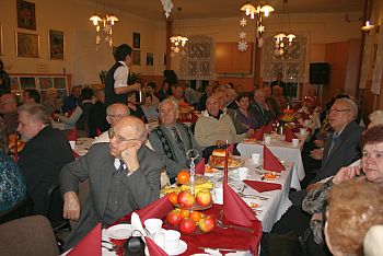 Życzenia noworoczne mieszkańcom złożyła wiceprezydent Bożena Jawor. Następnie O. Józef Birecki - proboszcz parafii p/w NSPJ pobłogosławił opłatki. Życzenia złożył również obecny na spotkaniu radny Grzegorz Mądry. Podczas miłego wieczoru wspominano poprzednie noworoczne spotkania jak i zmarłego Ojca Gargamela. Była także okazja do wspólnego kolędowania wraz z zespołem muzycznym.