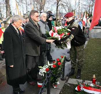 Kwiaty składali m.in. Prezydent Miasta Nowego Sącza – Ryszard Nowak, wraz zastępcami: Bożeną Jawor i Jerzym Gwiżdżem, Poseł na Sejm RP – Arkadiusz Mularczyk, przedstawiciele pozostałych parlamentarzystów, Przewodniczący Rady Miasta – Artur Czernecki, wraz z zastępcami: Jerzym Wituszyńskim i Stefanem Homoncikiem, Wicemarszałek Województwa Małopolskiego – Leszek Zegzda, Andrzej Szkaradek – Przewodniczący NSZZ Solidarność, delegacje szkół, Policji, Wojska Polskiego, delegacje organizacji kombatanckich i Związek Strzelecki „Strzelec”.