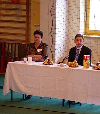 Mimo takiej mobilizacji sił impreza nie byłaby może tak atrakcyjna gdyby odbyła się w innym miejscu niż wspaniała, przestronna szkoła w Brzeznej z którą ŚDS z Nowego Sącza łączą więzi przyjaźni i wcześniejsze spotkania integracyjne. Dyrektor Gimnazjum Stanisław Mazur i wójt gminy Podegrodzie bezpłatnie udostępnili obiekt, a wspaniała młodzież pomagała w organizacji samego konkursu. Rozpoczęliśmy ok. 10.30, a oficjalnego otwarcia dokonał dyrektor wydziału Zdrowia i Opieki Społecznej Urzędu Miasta Nowego Sącza Grzegorz Chochla .