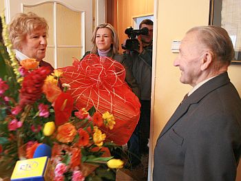 Jan Płachta świętował dzisiaj swoje 100 urodziny. Życzenia i gratulacje solenizantowi złożyła wiceprezydent Bożena Jawor. Wiceprezydent życzyła zdrowia, pomyślności i tak wspaniałej kondycji jeszcze przez długie, długie lata Wiceprezydent wraz Kierownikiem Urzędu Stanu Cywilnego Małgorzata Antkiewicz- Wójs przekazały również listy gratulacyjne od Prezesa Rady Ministrów Donalda Tuska i Wojewody Małopolskiego Jerzego Millera.