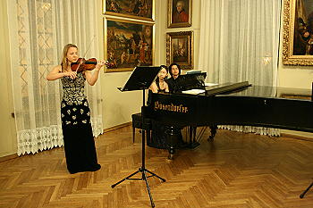 Następnie melomani usłyszeli wybrany skład duetów na dwoje skrzypiec Beli Bartoka. Tym razem wraz z Dominiką Rosiek wystąpił Khac-Uyen Nguyen – skrzypek i dyrygent, wychowanek Royal Academy of Music. Duety Bartoka, w których pobrzmiewają echa muzyki ludowej zostały przez muzyków zaprezentowane z dużą ekspresją i dynamiką, co spotkało się z uznaniem przybyłych na koncert słuchaczy. Pierwszą część koncertu zamknęły Introdukcja i Rondo Capriccioso – Camillle Saint-Saensa na skrzypce i fortepian. W drugiej części koncertu artyści wprowadzili publiczność w klimaty muzyki Sergeia Prokofieva i Edwarda Griega. Sonata na dwoje skrzypiec C-dur opus 56 – Sergeia Prokofieva, w wykonaniu królewskich muzyków ukazała piękno brzmień współczesnych, które często wykorzystywane są choćby w muzyce filmowej. Następnie Sonata c-moll opus 45 Edwarda Griega – zwanego Chopinem Północy, zabrzmiała pełnią harmonii charakterystycznej dla muzyki doby romantyzmu.