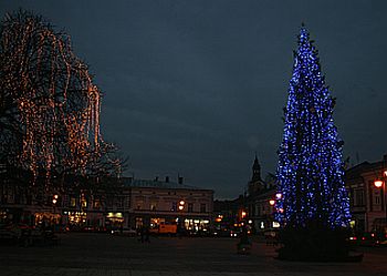 Na płycie Rynku stoi już tradycyjna choinka. W tym roku drzewko ma około 20 metrów, które przywieziono z lasu, z okolic Mszany Dolnej. Choinkę zdobi 70 gwiazdek, kilkadziesiąt bombek i kilkaset niebieskich lampek. Wejście do ratusza ozdobią dwa małe drzewka.