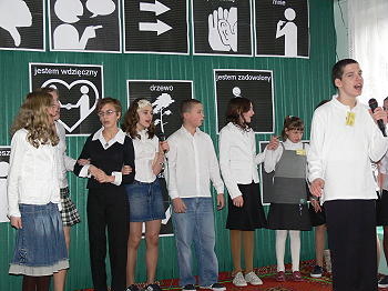 Komunikacja alternatywna, porozumiewanie się za pomocą piktogramów były głównymi tematami, które prezentowali podczas akademii uczniowie klasy dla dzieci z autyzmem. Dzieci przedstawiły krótką scenkę rodzajową, pt. „Drzewo, które umiało dawać”, która poruszała tematykę komunikacji niewerbalnej. Oglądający prezentację goście zostali zachęceni do refleksji nad tym, czy człowiek potrafi dziś dawać coś z siebie, a jednocześnie akceptować indywidualną zdolność innych ludzi do odwzajemniania miłości.