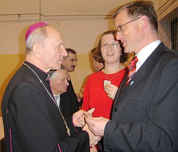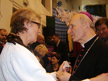 Następnie przy melodii kolęd ksiądz biskup, prezydent miasta oraz zaproszeni goście składali sobie życzenia świąteczne.
