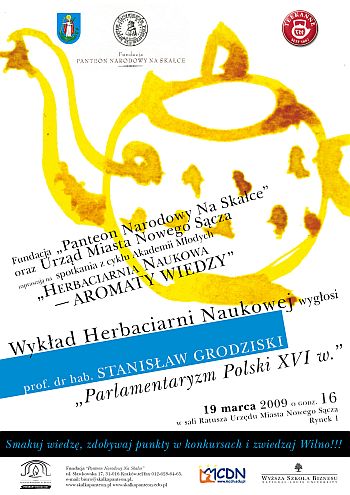 W najbliższy czwartek - 19 marca, odbędzie się kolejne spotkanie z cyklu Akademii Młodych „Herbaciarnia Naukowa – Aromaty Wiedzy”. Wykład "Parlamentaryzm Polski XVI w." wygłosi prof. dr hab. Stanisław Grodziski - z katedry Historii Prawa Polskiego Uniwersytetu Jagiellońskiego.