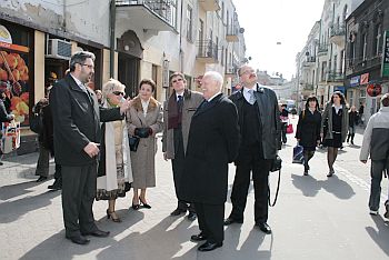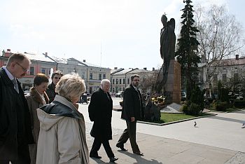 Przydent Ryszard Kaczorowski oraz jego małżonka zdecydowali się na krótki spacer po Nowym Sączu. Goście podziwiali kamieniczki na ulicy Jagiellońskiej, Rynek, pomnik papieża Jana Pawła II, fontannę i ratusz.