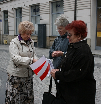 Wiceprezydent Bożena Jawor, wspomagana przez harcerzy, wręczała małe chorągiewki na sądeckim Rynku oraz ul. Jagiellońskiej. Kilka osób skorzystało z okazji spotkania z wiceprezydent aby podziękować władzom miasta za pielęgnowanie tradycji patriotycznych oraz dbałość o estetykę miasta.