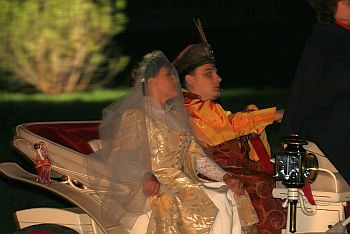 Podczas przedstawienia nie zabrakło ciekawych elementów scenografii wśród których znalazły się: kapliczka i drewniany krzyż otoczony krzewem bzu. Ponadto operę ubarwiały powozy zaprzęgnięte w konie, którymi zajechali na scenę goście weselnego orszaku.