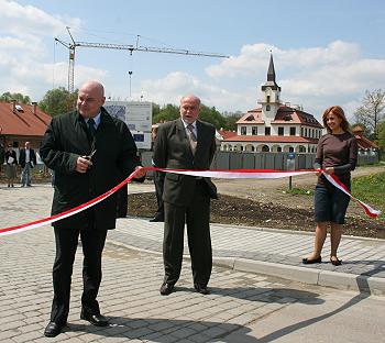 Prezydent Nowego Sącza Ryszard Nowak przeciął wstęgę i tym samym otworzył dla użytkowników parking oraz nową drogę dojazdową do Miasteczka Galicyjskiego. Jest to wkład Urzędu Miasta w rozwój obiektu. Parking może pomieścić 65 samochodów osobowych i pięć autobusów, koszt inwestycji wyniósł milion trzysta tysięcy złotych. Plany zakładają wybudowanie dodatkowych uliczek wewnątrz Miasteczka Galicyjskiego, jednak dalsze roboty drogowe ruszą dopiero gdy zostanie zakończona budowa budynków. Prezydent nadmienił także, że obecnie do Miasteczka Galicyjskiego doprowadza bezpieczny dojazd z ulicy Lwowskiej, a jeszcze do niedawna było tutaj niebezpieczne i prowizoryczne skrzyżowanie. Prezydentowi Nowakowi przy odbiorze inwestycji towarzyszył wiceprezydent Jerzy Gwiżdż.