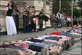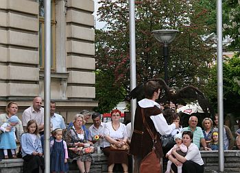 Wiceprezydent Bożena Jawor obserwowała również niezwykły pokaz lotów sokolich w wykonaniu Sokoliarskiej z Banskiej Štiavnicy. Sądeczanie przez kilkanaście minut mogli podziwiać ptaki drapieżne. Lotom i ewolucjom sokołów towarzyszyła muzyka.