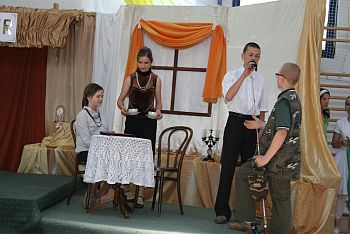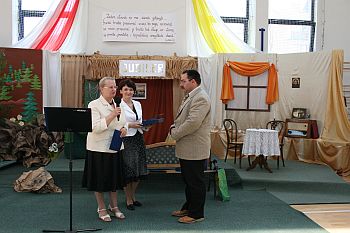 Na zakończenie spotkania goście obejrzeli spektakl przygotowany przez uczniów szkoły „Przed Sklepem Jubilera” oraz wystawę poświęconą pamięci Jana Pawła II – patrona szkoły.
