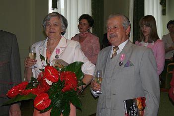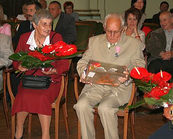 Prezydent Ryszard Nowak wręczył jubilatom medale "Za długoletnie pożycie małżeńskie" oraz złożył życzenia zdrowia i pomyślności. Na zakończenie uroczystości odśpiewano tradycyjne „Sto lat”, później bliscy i znajomi złożyli jubilatom życzenia.