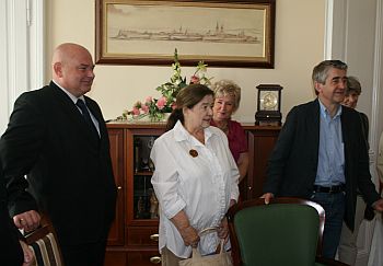 Katarzyna Łaniewska - znana aktorka między innymi z serialu ”Plebania” i aktor Stanisław Górka gościli u prezydenta Nowego Sącza Ryszarda Nowaka i wiceprezydent Bożeny Jawor. Aktorzy dzień wcześniej wystąpili na deskach sceny MOK w sztuce pt „Teściowa i zięć”. Spektakl wyreżyserowała Grażyna Matyszkiewicz a opracowanie muzyczne przygotowała Irena Kluk-Drozdowska, która również była gościem w ratuszu. Spotkanie było okazją do złożenia życzeń urodzinowych znanej polskiej aktorce.